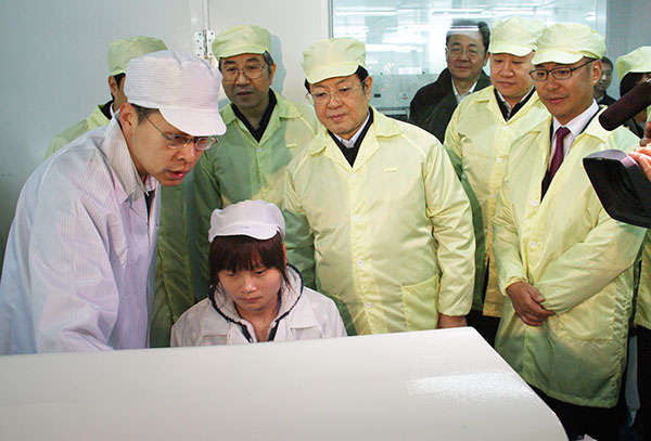 王兆國副委員長仔細(xì)聽取了園區(qū)建設(shè)情況匯報(bào),參觀了園區(qū)企業(yè)展品及生產(chǎn)車間,詳細(xì)了解企業(yè)的成本、技術(shù)、市場銷售、工人待遇、投資環(huán)境等情況,并向工作在企業(yè)一線的工人致以新春的慰問和祝福。