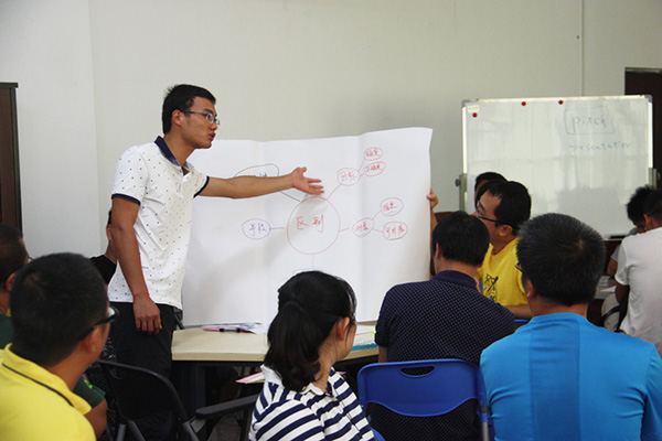 體驗課由中國地質(zhì)大學(xué)博士、子謙國際創(chuàng)業(yè)教育學(xué)院首席專家、河北地質(zhì)大學(xué)創(chuàng)新創(chuàng)業(yè)教育學(xué)院執(zhí)行院長與教學(xué)總監(jiān)朱燕空作為主講。體驗課以新常態(tài)下雙創(chuàng)發(fā)展及市場拓展為背景,就創(chuàng)業(yè)思維內(nèi)涵、體驗創(chuàng)業(yè)思維之旅、創(chuàng)業(yè)思維與管理思維對比,與學(xué)員們探討交流雙創(chuàng)發(fā)展之路,布置各小組“制造未來”任務(wù),設(shè)想了創(chuàng)業(yè)之路所遇到各種機遇與困阻。朱院長表示,創(chuàng)業(yè)成長期,大部分創(chuàng)業(yè)青年不缺乏目標(biāo)和想法,著實選擇一個有效的路徑去實現(xiàn),路徑有很多,每條路徑都代表著一種可能性,并且充滿了不確定性,關(guān)鍵在于如何找到有效的路徑,需要我們?nèi)バ袆?、反思和調(diào)整;而不是過多的詳細(xì)規(guī)劃,注重逐步執(zhí)行。面臨不確定性,朱院長結(jié)合自身創(chuàng)業(yè)經(jīng)驗,與學(xué)員們探討分享創(chuàng)業(yè)新思維與企業(yè)管理模式,并運用了大量案例對市場拓展做指導(dǎo)。課堂最后,朱院長與學(xué)員逐個交流創(chuàng)業(yè)相關(guān)熱門話題。
