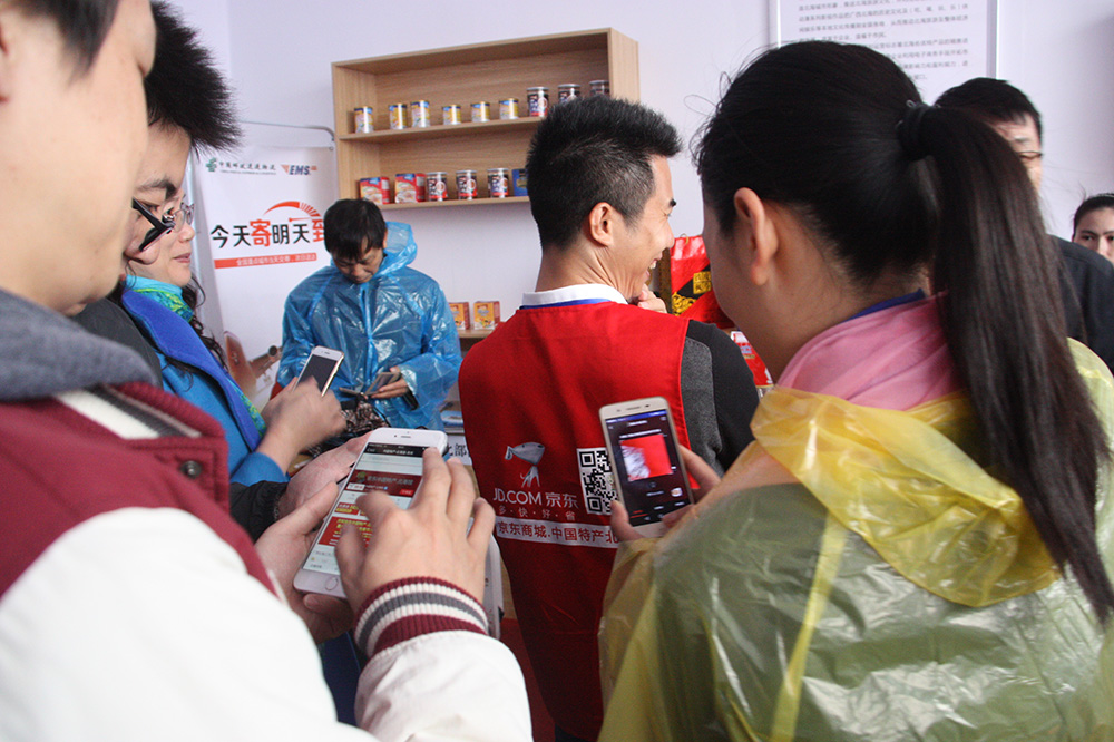 電商谷展區(qū)熱鬧非凡(與會嘉賓在電商谷體驗(yàn)京東北海館購物)