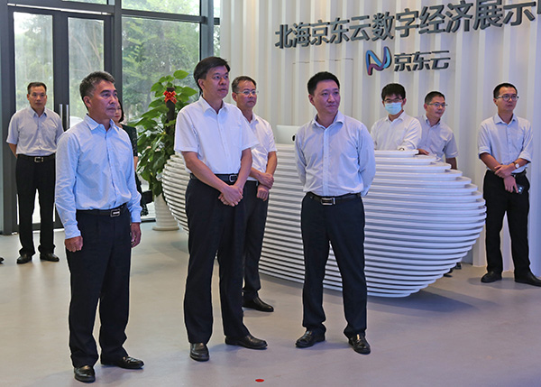 2020年6月11日下午,北海市委書記王乃學(xué)同欽州市委書記許永錁?biāo)暑I(lǐng)的欽州市黨政代表團到中國電子北部灣信息港調(diào)研,參觀了北海京東云數(shù)字經(jīng)濟展示中心、京東網(wǎng)紅直播基地,聽取企業(yè)負責(zé)人介紹生產(chǎn)經(jīng)營等方面的情況。